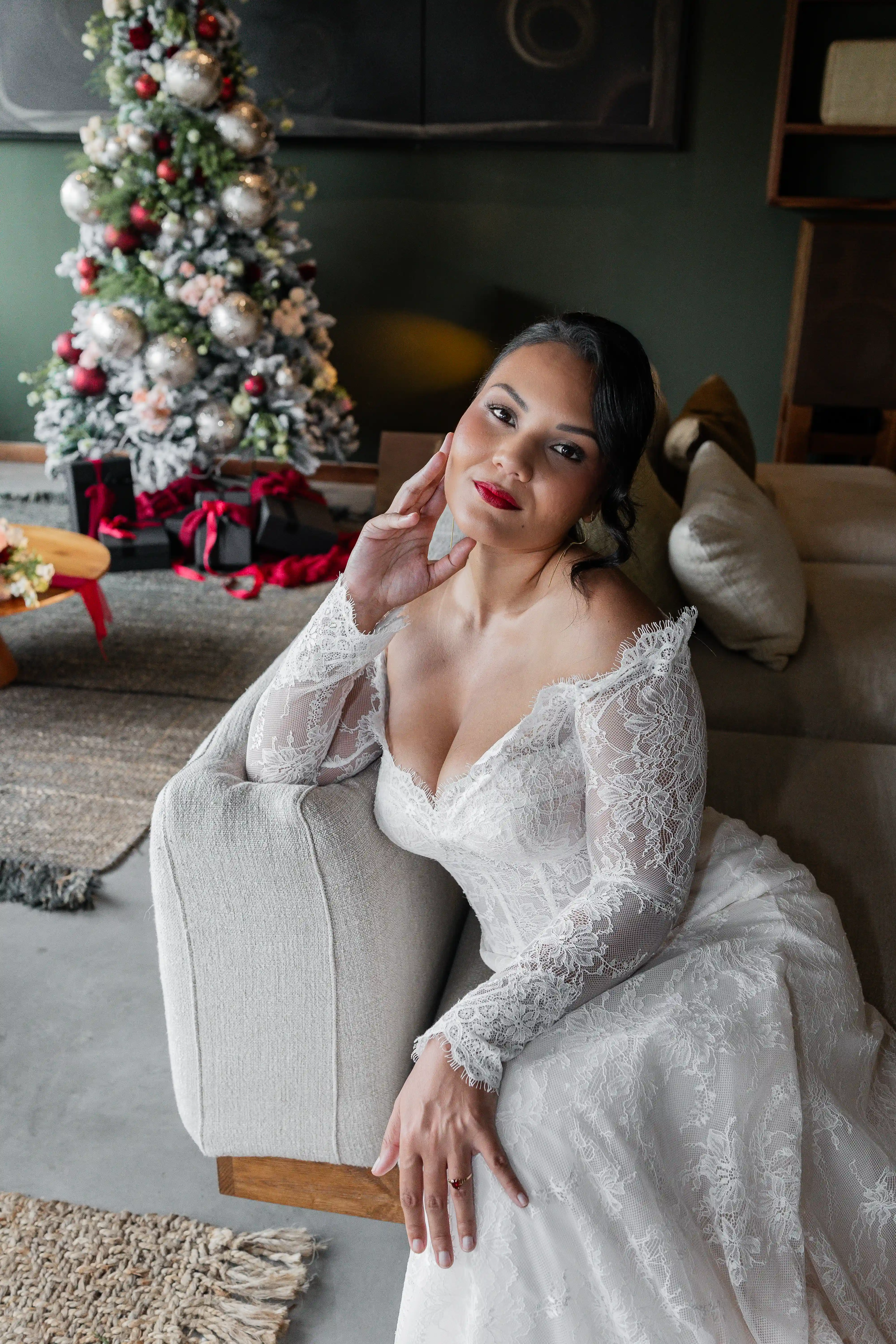 Entre élégance et magie de Noël, cette séance raconte une mariée qui se marie pendant l'hivert austral.